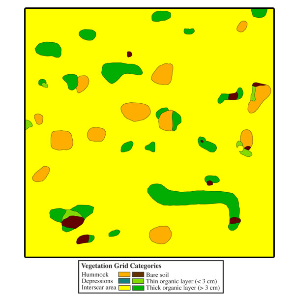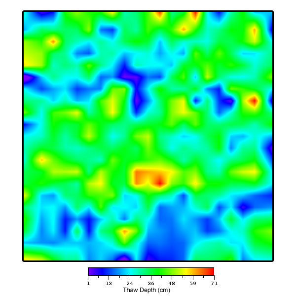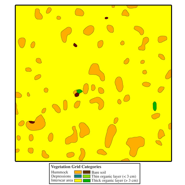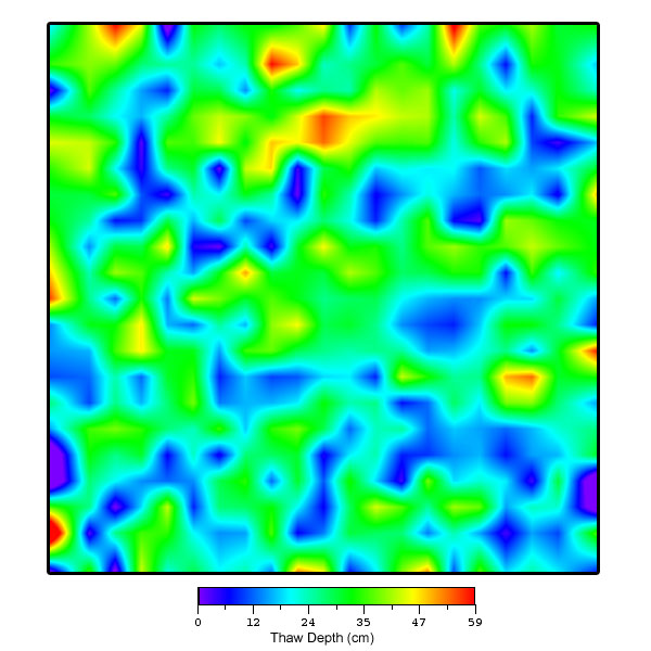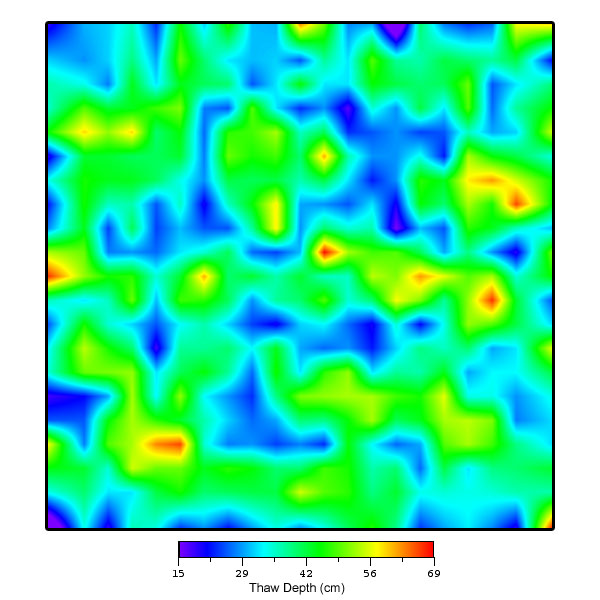 Collection of Happy Valley data began in June 2000. Data collection thus far has involved the measurement of thaw depths on the 10 x 10 meter square grids, the mapping of the vegetation, aerial photography, installation of heaveometers, installation of soil and climatological data collection instrumentation, and installation of 50 meter long transects (2) for measuring size/density of frost boils, as well as to aid in characterization of the vegetation.